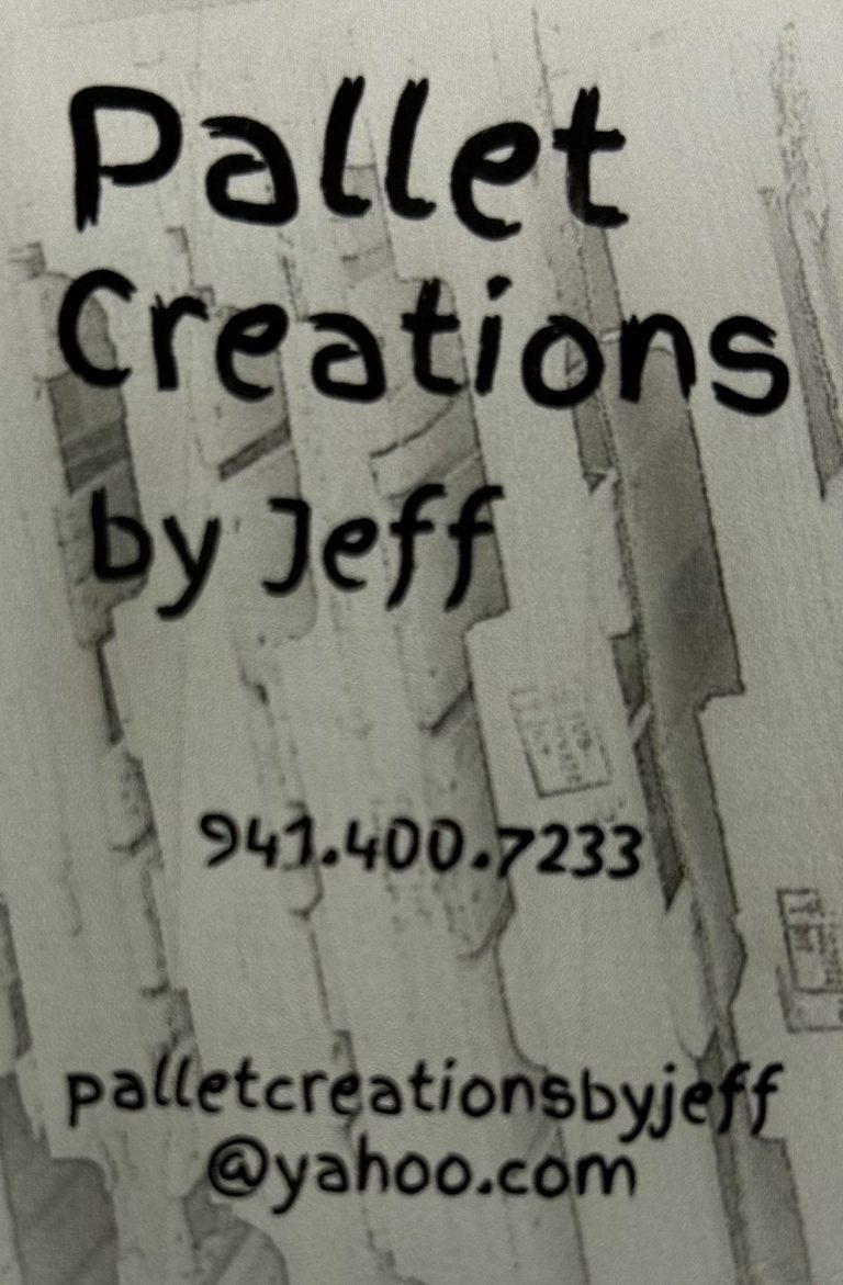 Jeff builds custom projects ranging from small furniture to Christmas trees; mostly using wooden pallets. See a sample of his work below and call or text at (941) 400-7233 make your one of a kind creation.